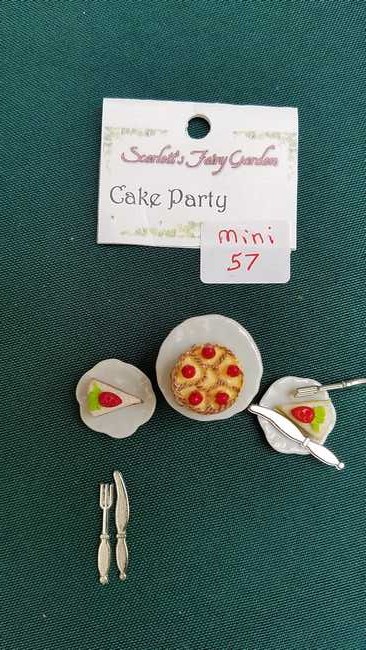 A 10 piece set for a Fairy Cake Party! Included is a pretty while porcelain cake stand, two porcelain plates, one whole cake and two slices of delicious cake. Also included are: 2 knives 2 forks